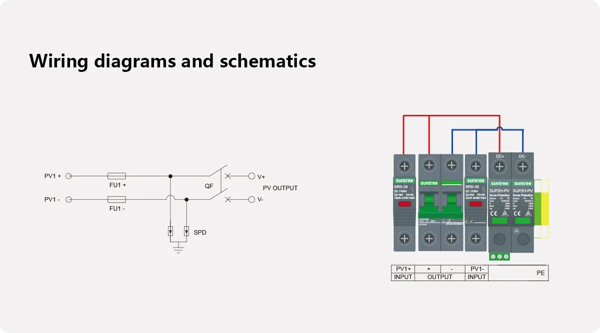 حماية الزخات المستمرة SUP2H-PV 2P 500 فولت T2/20-40KA 1