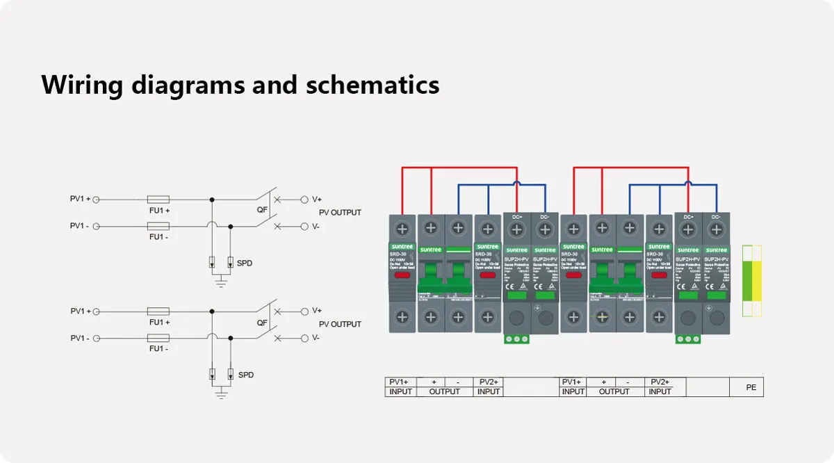 حماية الزخات المستمرة SUP2H-PV 2P 500 فولت T2/20-40KA 2