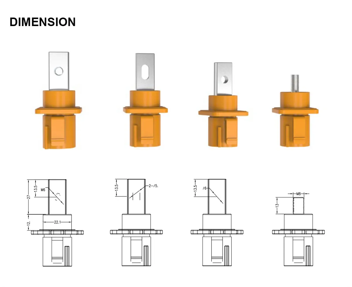 • يحتوي على وظيفة منع إدخال القطبين الإيجابي والسالب بشكل خاطئ، مما يمنع خطر الدائقة القصيرة والقوس الكهربائي الناتج عن الإدخال الخاطئ. في الوقت نفسه، يمكن تدويره 360 درجة، مما يسهل التركيب والمخرج في اتجاهات متعددة؛