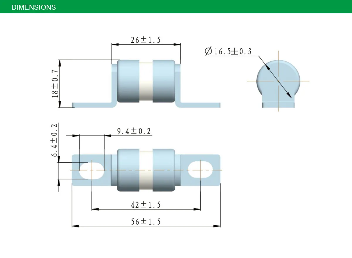 | SEV16B150-20A | 20 | 12 | 100 | 20 كيلو أمبير ثابت الزمن (L/R): 2 مللي ثانية ± 0.5 مللي ثانية | 0.45 | برغي تركيب M 6، عزم تركيب موصى به 6 نيوتن متر |