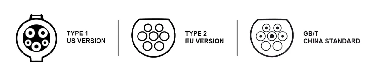 المعايير التنفيذية SAE J 1772 (نوع 1) / IEC 62196 نوع 2 / معيار الصين GB/T